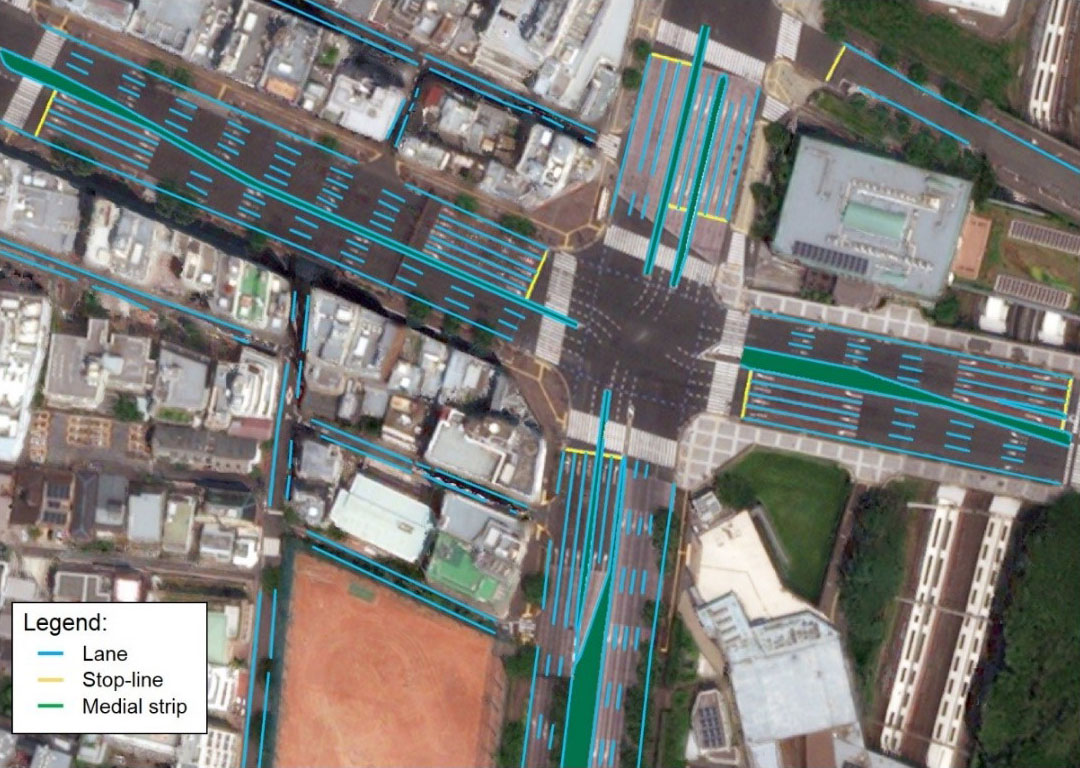 自動運転車では、複数のリアルタイムセンサーを用いることで、安全運転を確実なものとしますが、センサーを用いた自動運転の基盤データとして高精度な道路地図は不可欠です。現状、高精度地図がカバーしているのは、全世界の道路ネットワークの1%未満※1のため、自動運転社会実現のためには、市街地と地方道路のカバー範囲を広げる必要があります。本実証実験では、精確な衛星画像で生成した高精度地図を元に、自動運転用ソフトウエアが複数のデータソースを参照した上で指示を送り、自動車が安全に対処できるようにすることを目指します。