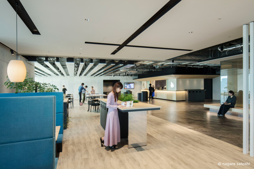 新オフィスは、「AI PALETTE」をメインコンセプトとして作られました。「AI」は人工知能・愛を意味し、最先端でありながら人を中心としていることを、「PALETTE」は多様な社員が共存していることを示しています。「Inspiration(多彩なインスピレーションを創出する)」、「High Productivity(高い生産性を実現する)」、「Happy Work(幸せに活き活きと仕事をする)」を3つの柱とし、「Hello New Office Workshop」を定期的に開催し、そこで出た社員のアイデアを多数取り入れた場作りをしてきました。今後も、より快適なオフィス環境を社員とともに作りあげていきます。