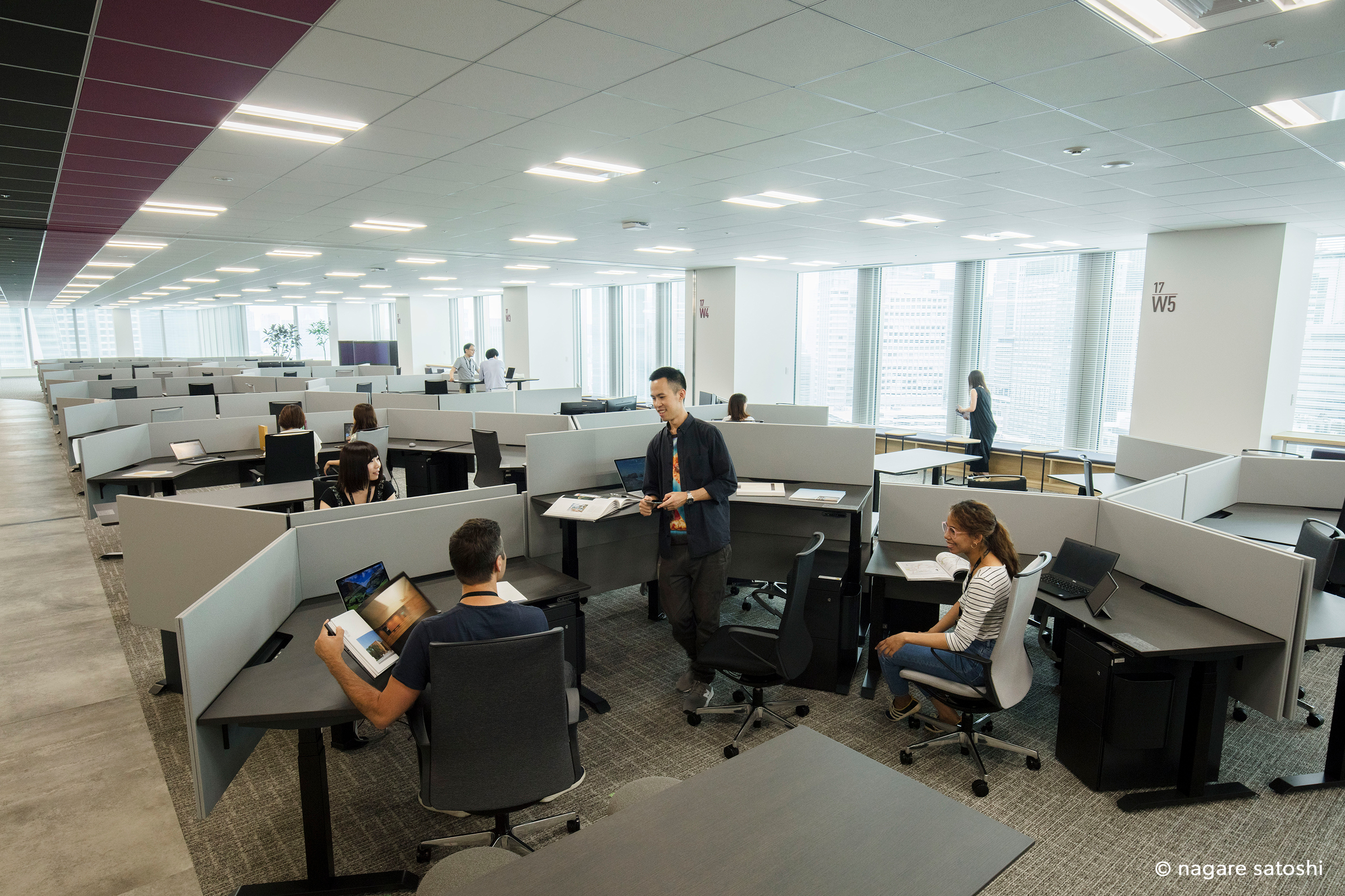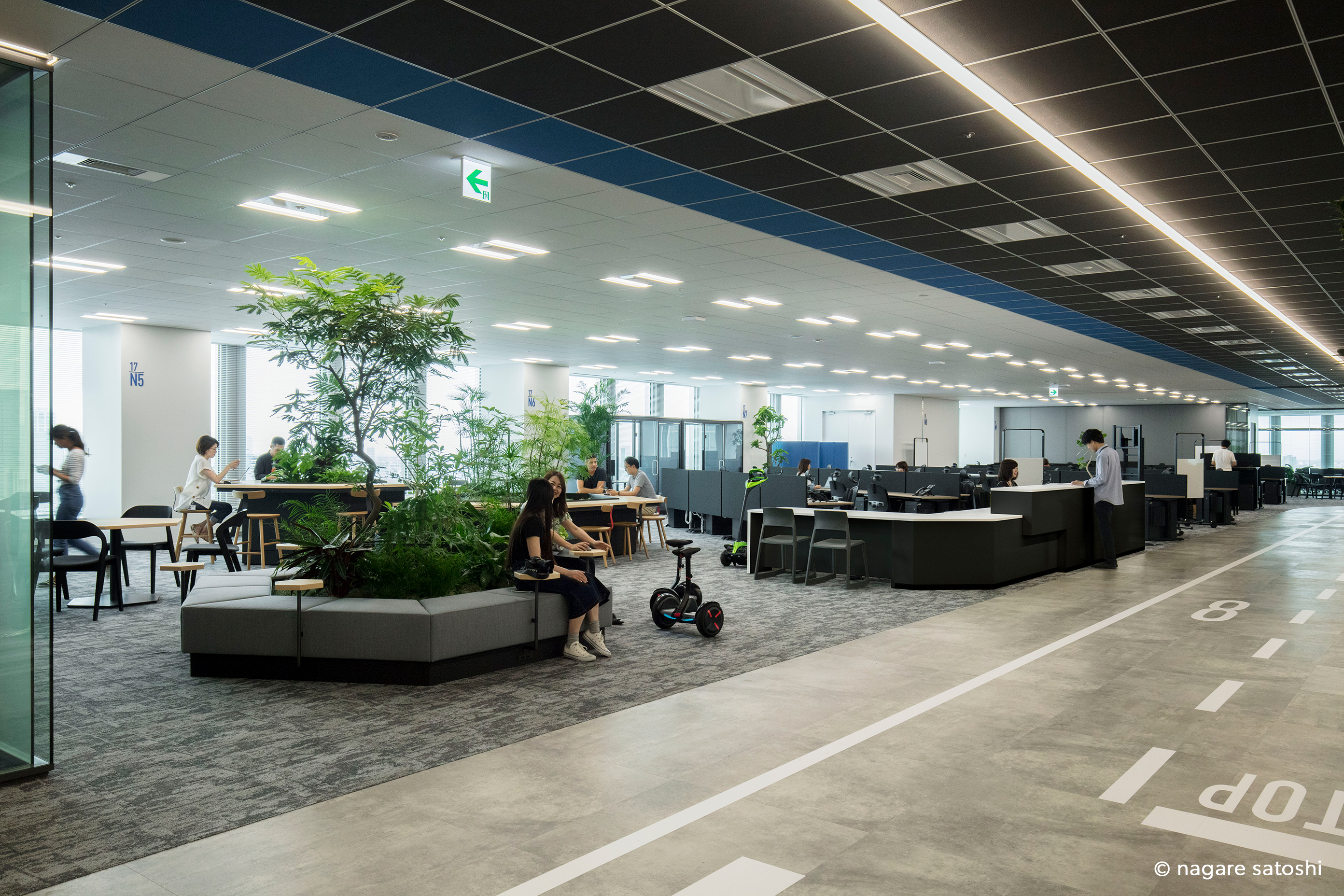 オフィスづくりの過程では、希望する社員全てが参加可能なワークショップやヒアリングを定期的に開催し、アジャイルなソフトウェア開発のためのスクラムに適したハニカム(ハチの巣)型デスクレイアウトの採用やパーソナルモビリティの導入など、社員の想いやアイデアを数多く取り入れてきました。