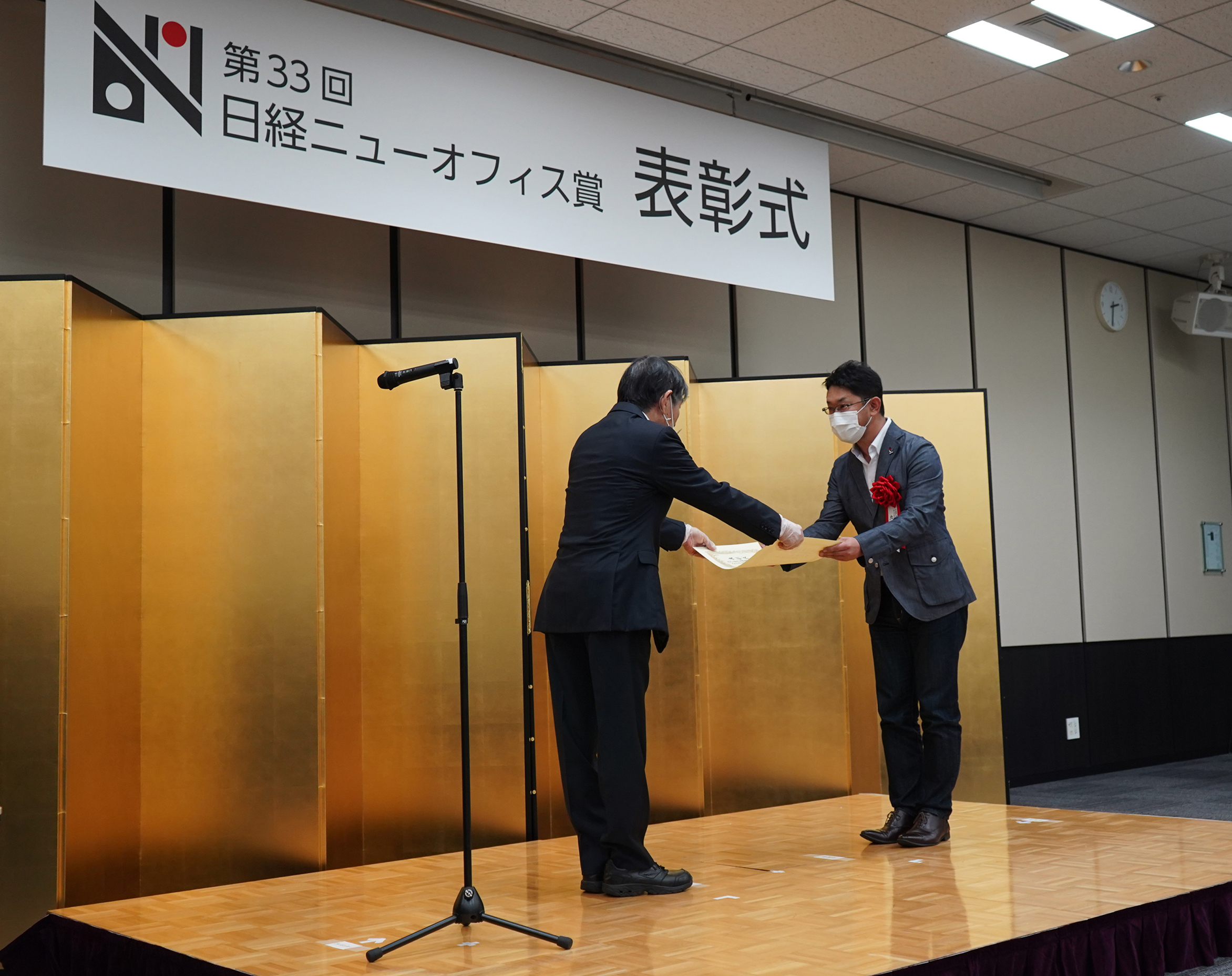 「日経ニューオフィス賞」は、ニューオフィスづくりの普及・促進を図ることを目的に、創意と工夫を凝らしたオフィスを表彰するものです。一般社団法人ニューオフィス推進協会は、感性や創造性など社員の個性を活かし、クリエイティブな現場力を向上させるような、知識創造を誘発するオフィスのあり方について普及や啓蒙活動などをし、クリエイティブ・オフィス推進事業をおこなっています。一般社団法人ニューオフィス推進協会と日本経済新聞社との共催、経済産業省と日本商工会議所の後援のもと、「第33回日経ニューオフィス賞」では応募総数125件の中から1社に「経済産業大臣賞」が、3社に「クリエイティブ・オフィス賞」が与えられました。