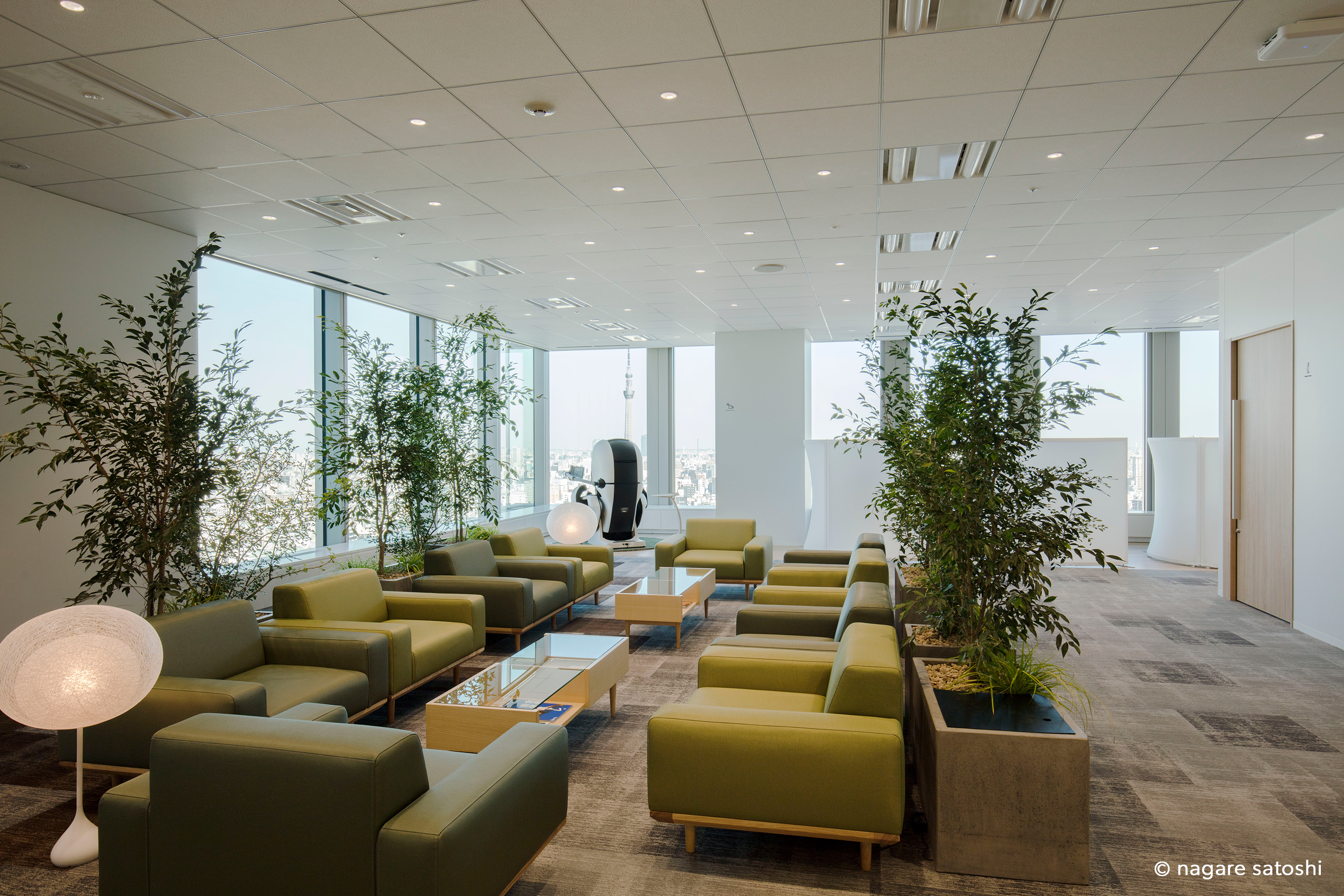 「AI」は愛・人工知能を意味し、最先端でありながら人を中心としていることを、「PALETTE」は多様な社員がそれぞれの良さを活かして共存していることを示しています。 このオフィスコンセプトに基づき、社員が日々の仕事の中で、3つの柱である「Inspiration(多彩なインスピレーションを創出する)」、「High Productivity(高い生産性を実現する)」、「Happy Work(幸せに活き活きと仕事をする)」を実現できるオフィスをめざしています。