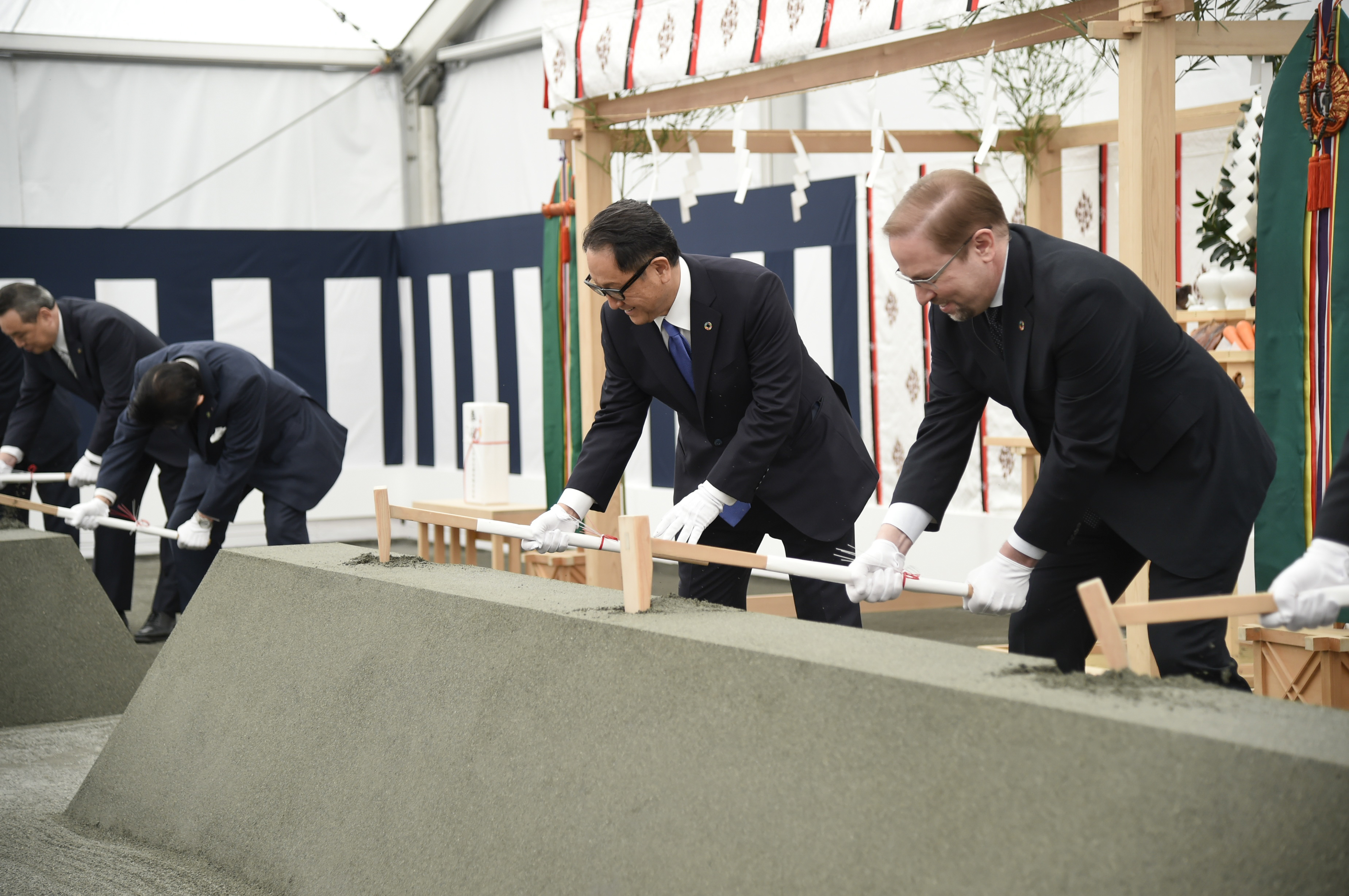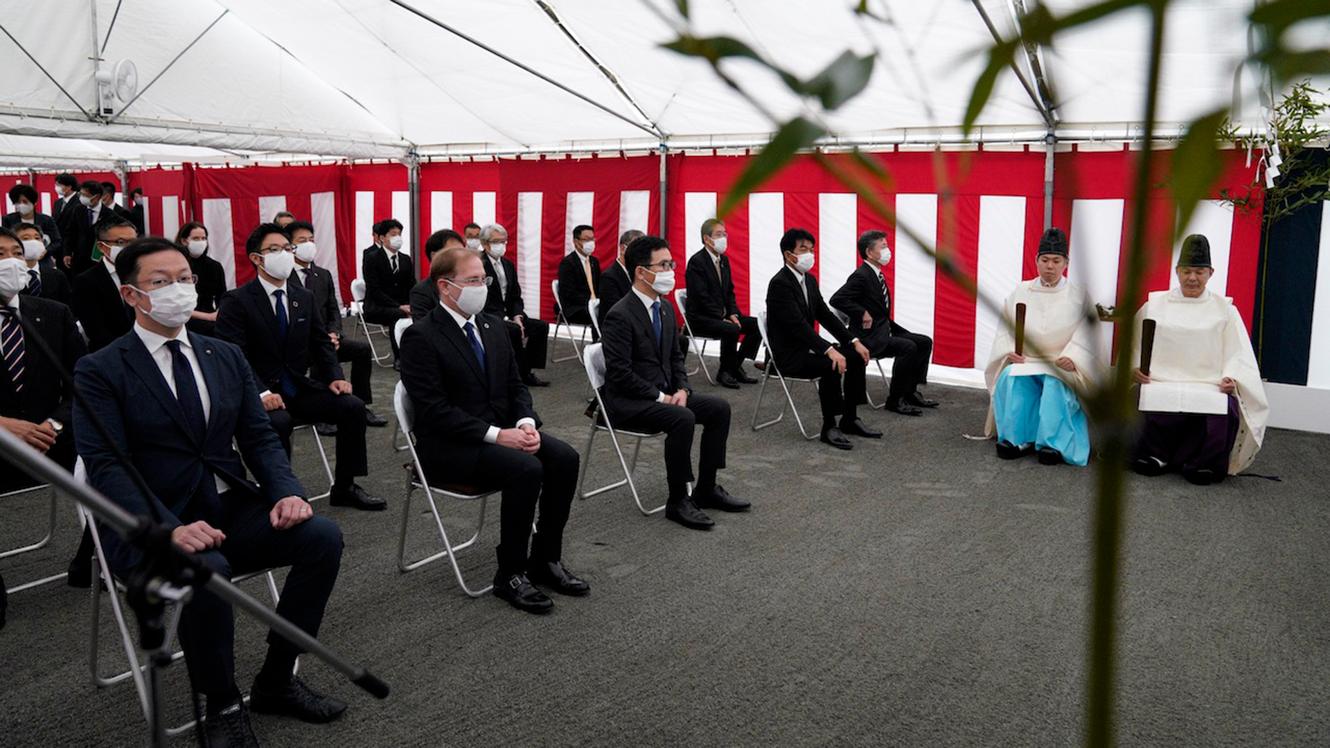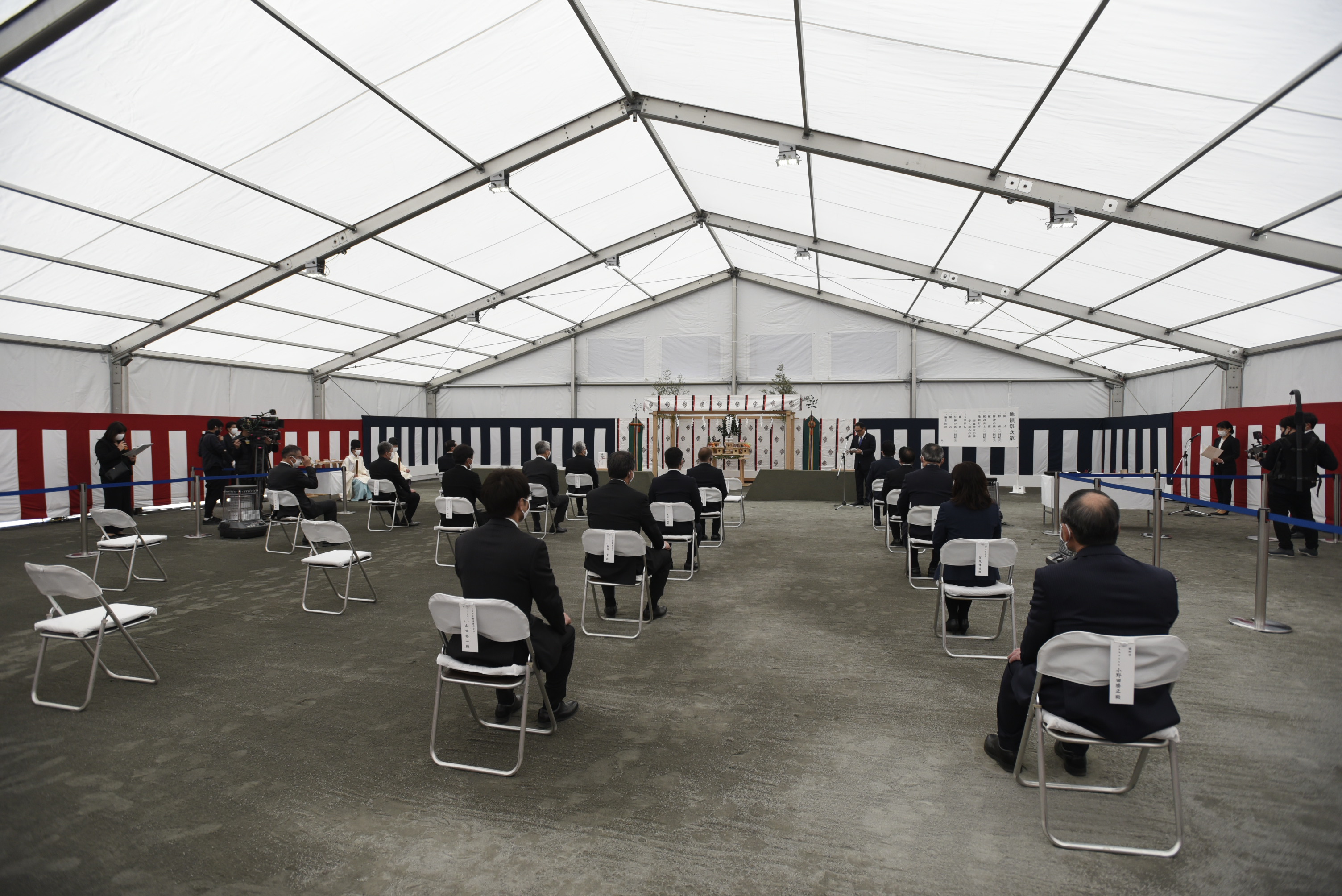 地鎮祭には、川勝平太静岡県知事や髙村謙二裾野市長など地元関係者を来賓に迎え、トヨタの豊田章男社長、ウーブン・プラネットのジェームス・カフナーCEO、TMEJの宮内一公社長などの関係者が出席し、本格的に開始される建設工事の安全を祈願しました。