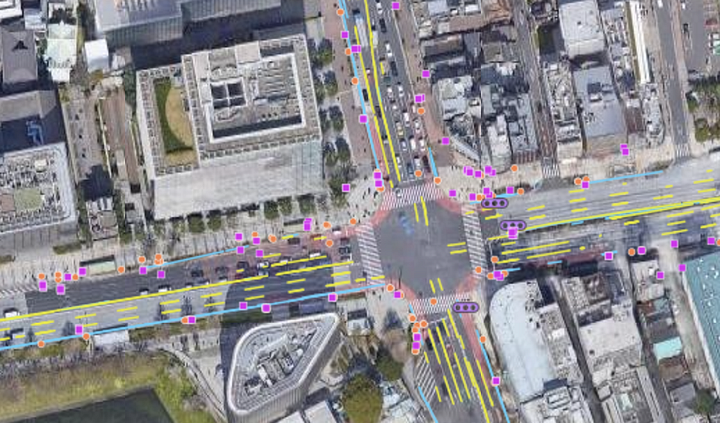 The resulting vector features serve as a basemap or “initial map” to the AMP HD map. This “initial map” not only covers urban metropolitan areas, such as Tokyo, but secondary and tertiary roads in rural areas, which are sometimes excluded from traditional HD maps.