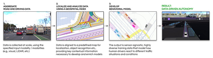 Sensory data joins with map data to create the behaviors on which autonomy algorithms train upon.